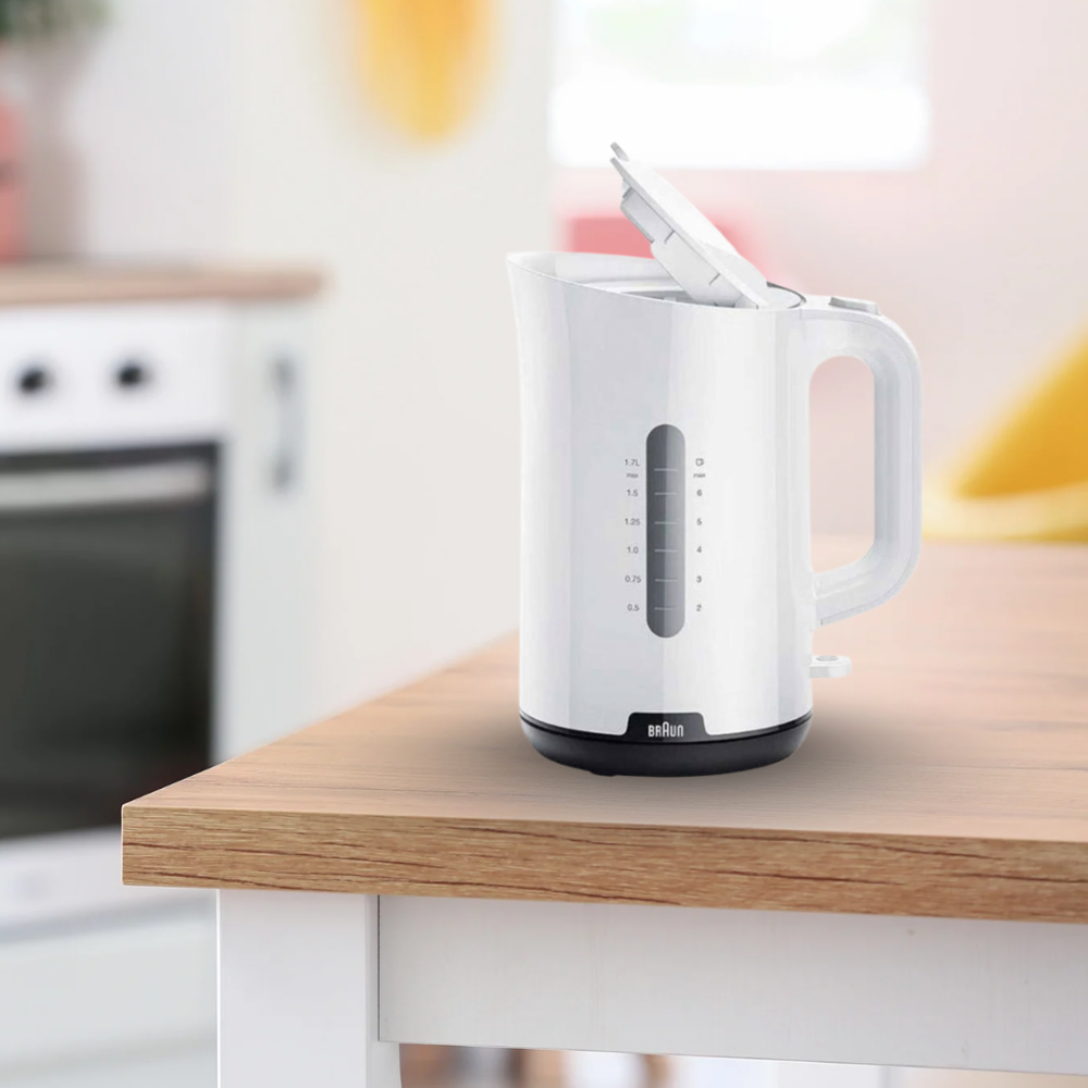 - يتميز تصميم الغلاية باللون الأبيض الناصع